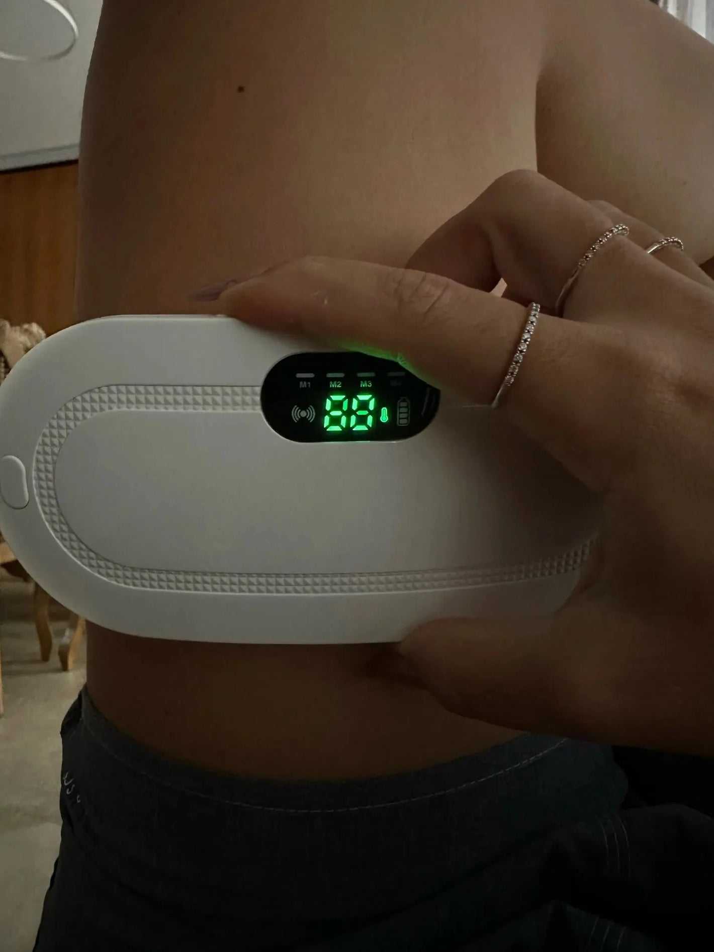 - Charge & Wear: First, fully charge the belt. Then, position it comfortably on your tummy or back.